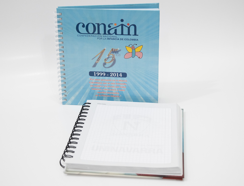 Cuaderno tapa dura, tamaño 15 x 21 cm.